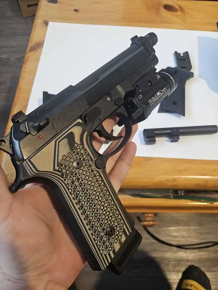 – Streamlight TLR1-HL. This is thr 600 lumen version. Light wore a tiny amount of finish off the pic rail
