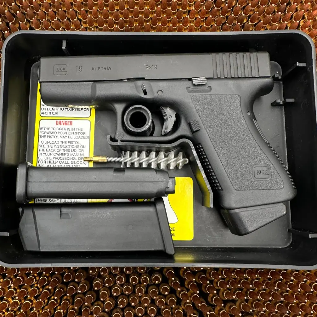 The Glock 19 is a semi-automatic, polymer-framed, striker-fired pistol chambered in 9x19mm Parabellum, renowned for its reliability and versatility. Its compact size makes it a popular choice for both concealed carry and law enforcement use. Though it has evolved through multiple generations, it maintains a legacy of simplicity and performance.