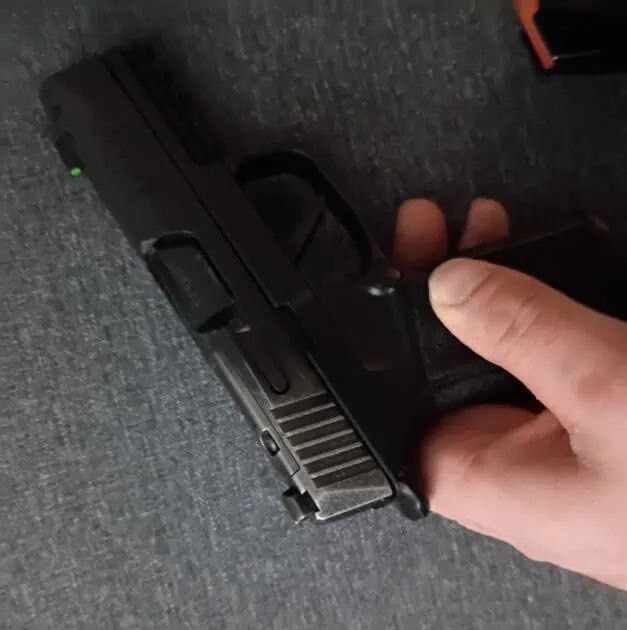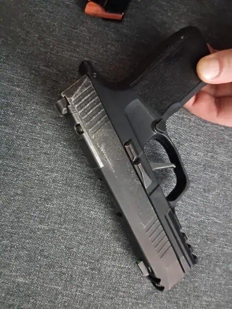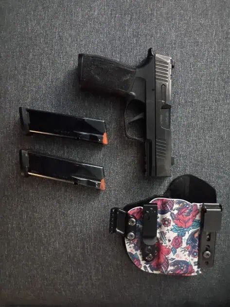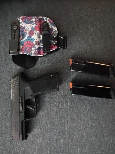 Heavy wear on finish towards the back of the slide comes with box, 2 mags, and IWB holster